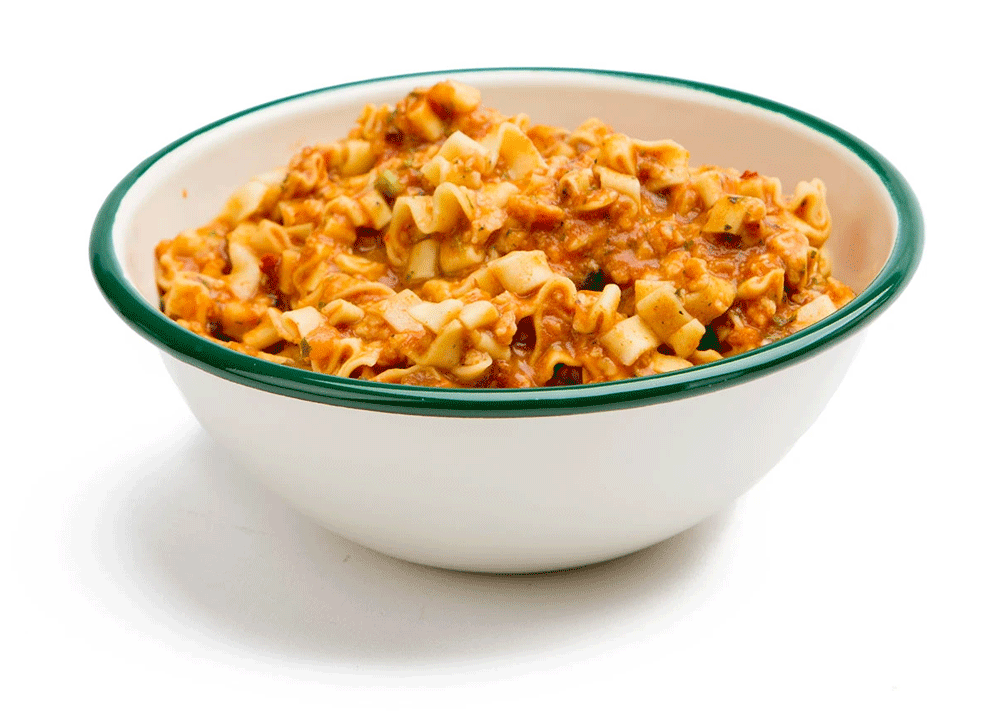 - Pasta with Italian-spiced tomato sauce and two types of cheese