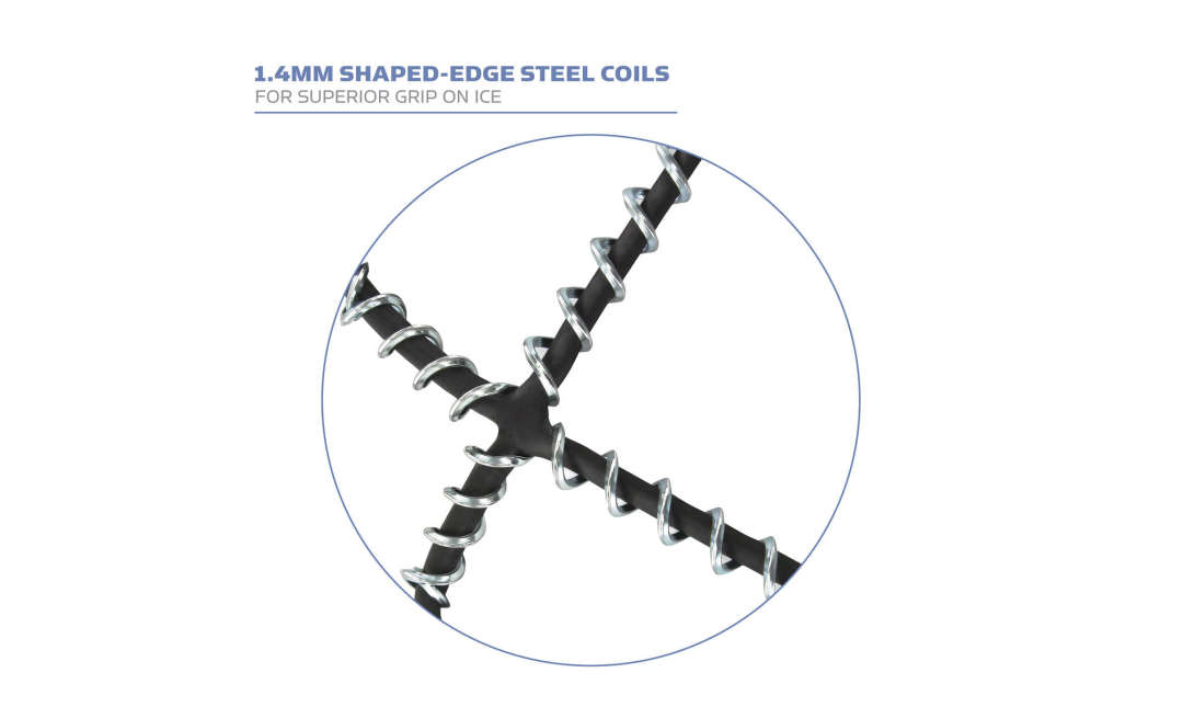 - 360° of traction with patented skid lock coil system