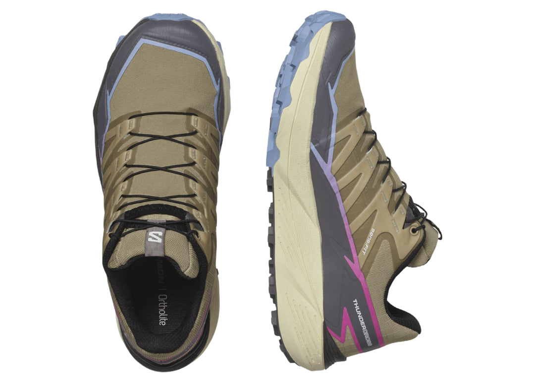 THUNDERCROSS is a trail shoe for a dynamic, cushioned ride with exceptional grip and precise foothold. Equipped with aggressive 5mm lugs to tackle any terrain, no matter how tricky, technical, or just downright nasty. Developed in the French Alps, tried and tested on everything from rolling terrain to rocky slopes or sticky single tracks.