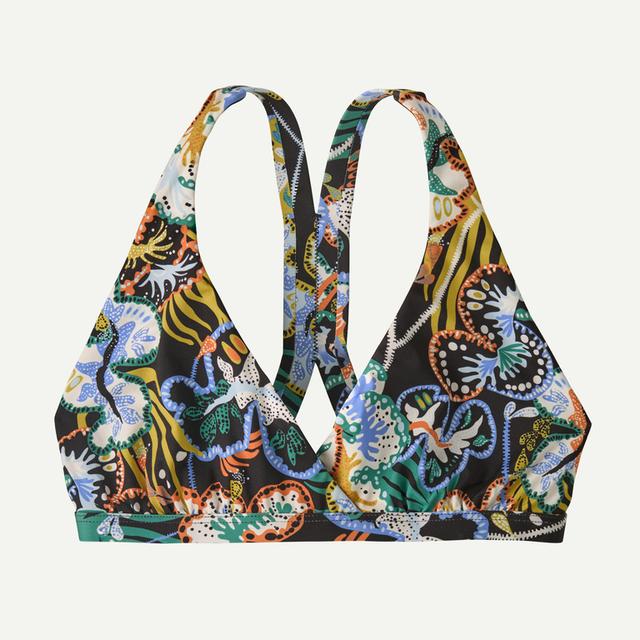 This athletic racerback bikini top offers supportive comfort in the lineup or on the beach. Made of soft, stretchy and durable 83% recycled nylon/17% spandex (solids), 83% recycled polyester/17% spandex (prints) or 80% recycled nylon/20% spandex (jacquards). Fair Trade Certified™ sewn.